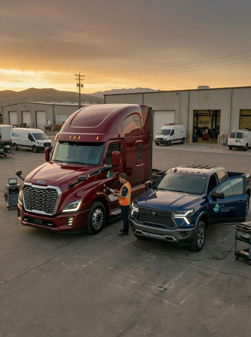 "As Northern California's premier mobile CARB compliance agency, CA Emissions Group protects your bottom line. We specialize in rapid DMV hold clearances for owner-operators and comprehensive SB 210 route auditing for commercial and municipal fleets. Armed with state-approved OBD-II diagnostic technology and deep regulatory expertise, we cut through government red tape so your trucks stay on the road and generating revenue."